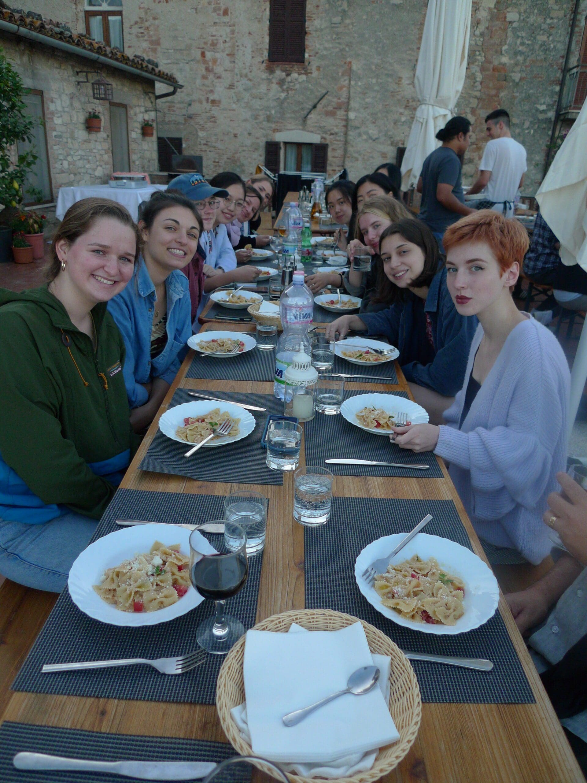 Perched on its little mountaintop, Monte Castello is home to about 300 residents, most of whom are descended from generations of Montecastelesi. These local people are directly involved in the day-to-day functioning of the school. The surrounding landscape is quilted with vineyards, olive groves and sunflower fields, and stitched in with rows of cypresses and umbrella pines. It is one of the richest areas of farmland in the country, hence Umbria’s designation as the “green heart of Italy.” The rich and bountiful harvest from these farms yields equally rich traditions in cooking, olive oil production, and wine and cheese making. Our program participants directly benefit from the bounty of this countryside, with traditional Umbrian meals prepared each day by our cook with fresh, locally grown ingredients.