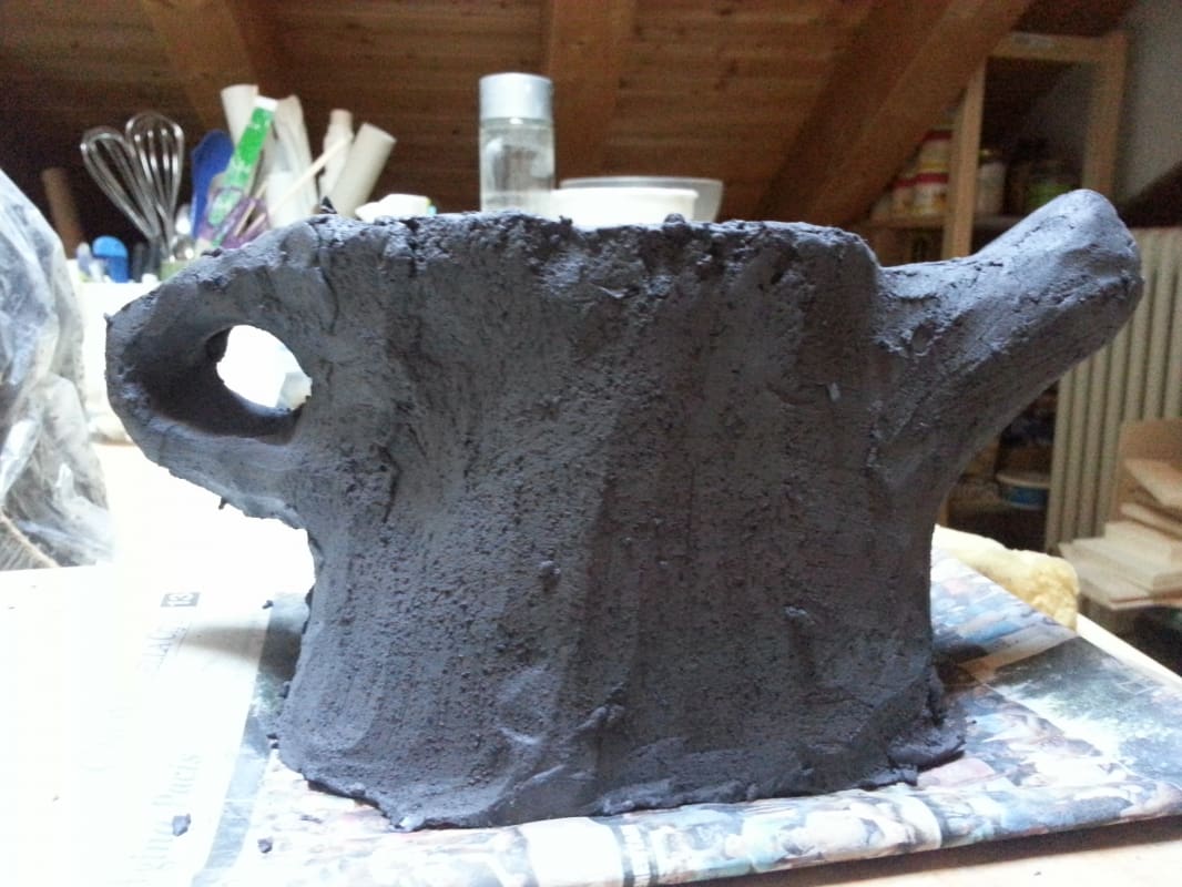 The kurinuki process is a "sculptural" technique of volume formation: instead of adding material, as happens in the dovetail or slab construction, we start from the block of clay and gradually remove it, digging internally and modeling the external wall with the help of tools, until the desired shape is obtained. It is therefore a question, as in sculpture, of freeing a form enclosed in the formless.The idea of the artistic object may not be clear at the beginning: it is precisely the lack of clarity (not seeing clearly) that guides the path, that digs a path. What he obtains in the end is a symbol, something that continues to be linked to his origins, but like a child his destiny is autonomous.